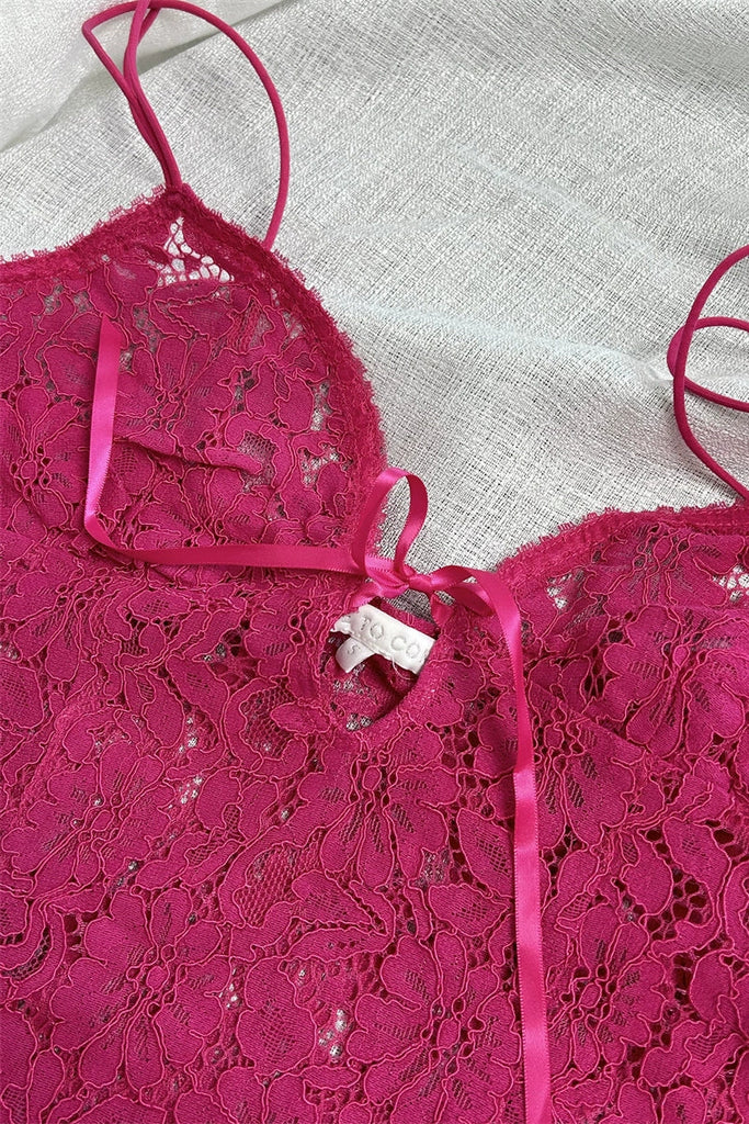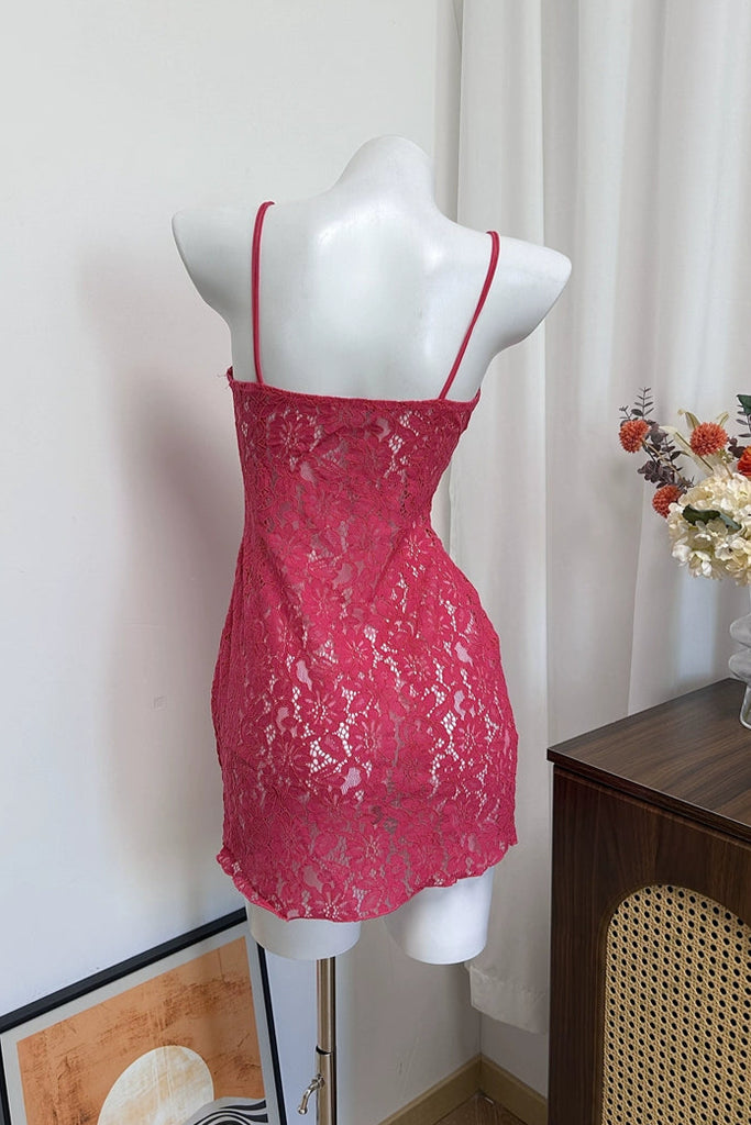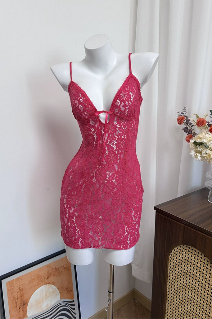 rose pink lace suspender see-through wrapping hips dress – Bellepolly