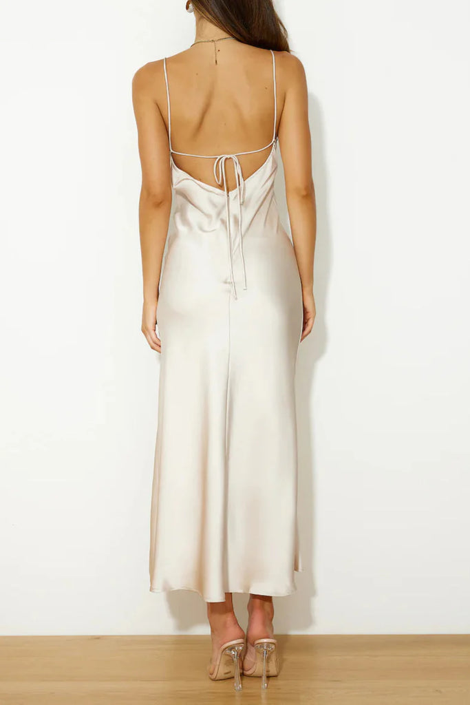 This Satin slit Midi Dress in Champagne is crafted from high-quality satin fabric, ensuring a luxurious and elegant drape. The slit adds a touch of sophistication, while the midi length provides a flattering silhouette. Perfect for formal events, this dress is a must-have for those who appreciate timeless style and superior quality.