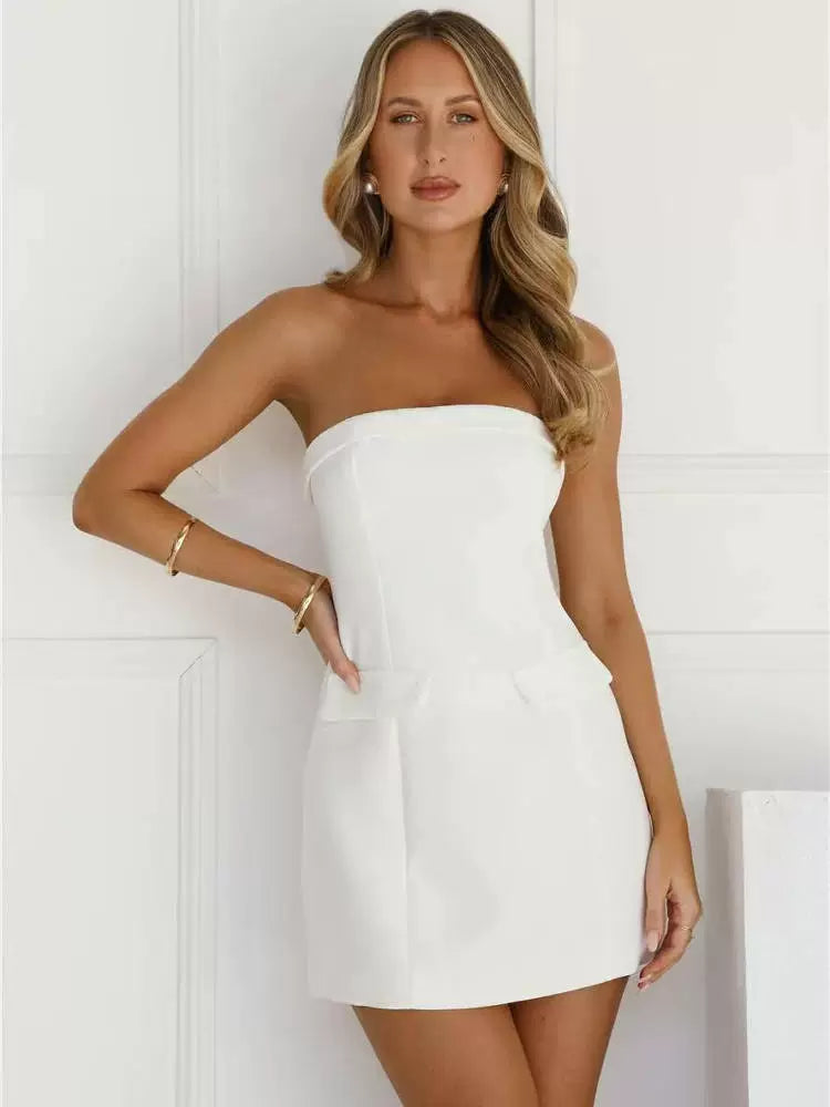white sleeveless bandeau cinquet mini dress – Bellepolly