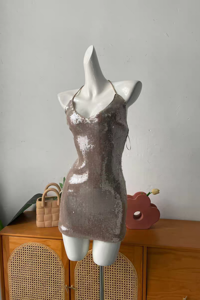 sequin suspender backless mini dress