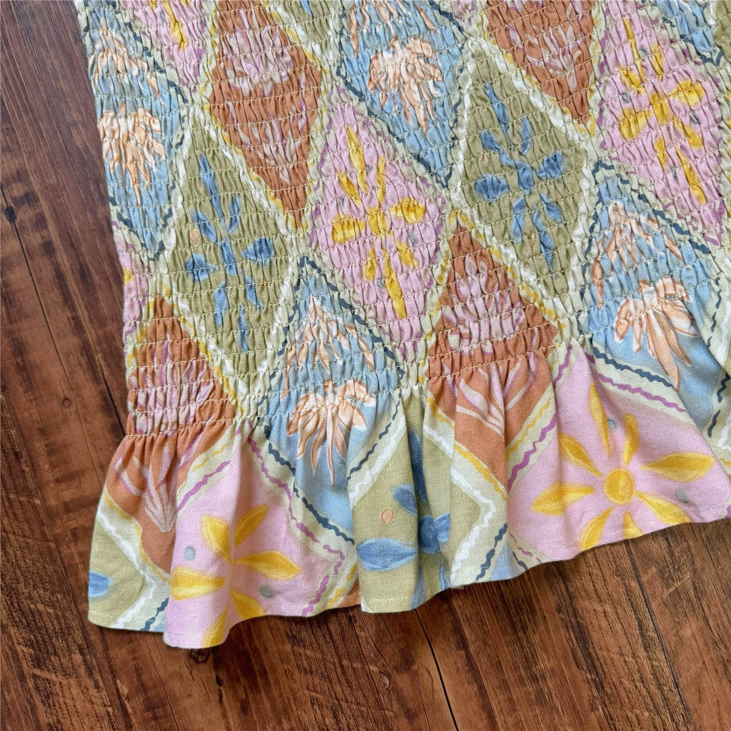 diamond plaid floral pleated elastic hip hugging linen skirt - S / Foreign trade is inevitable~ is backordered and will ship as soon as it is back in stock.