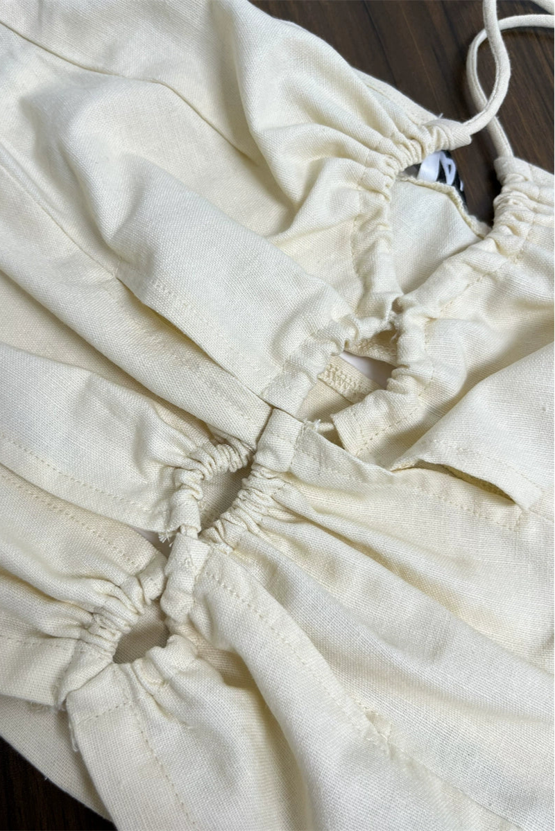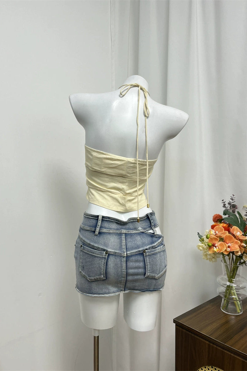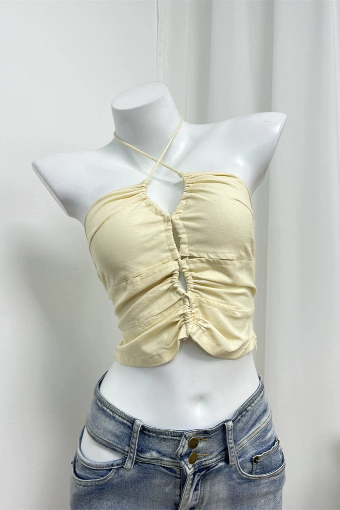 Light Yellow Hollow Halterneck Camisole - S is backordered and will ship as soon as it is back in stock.