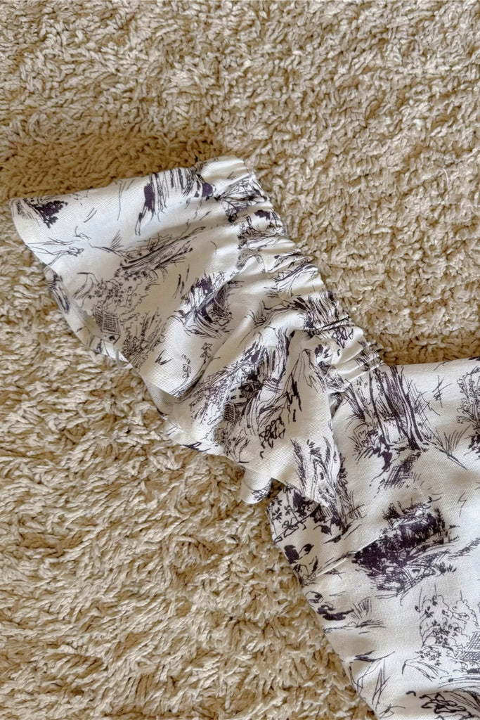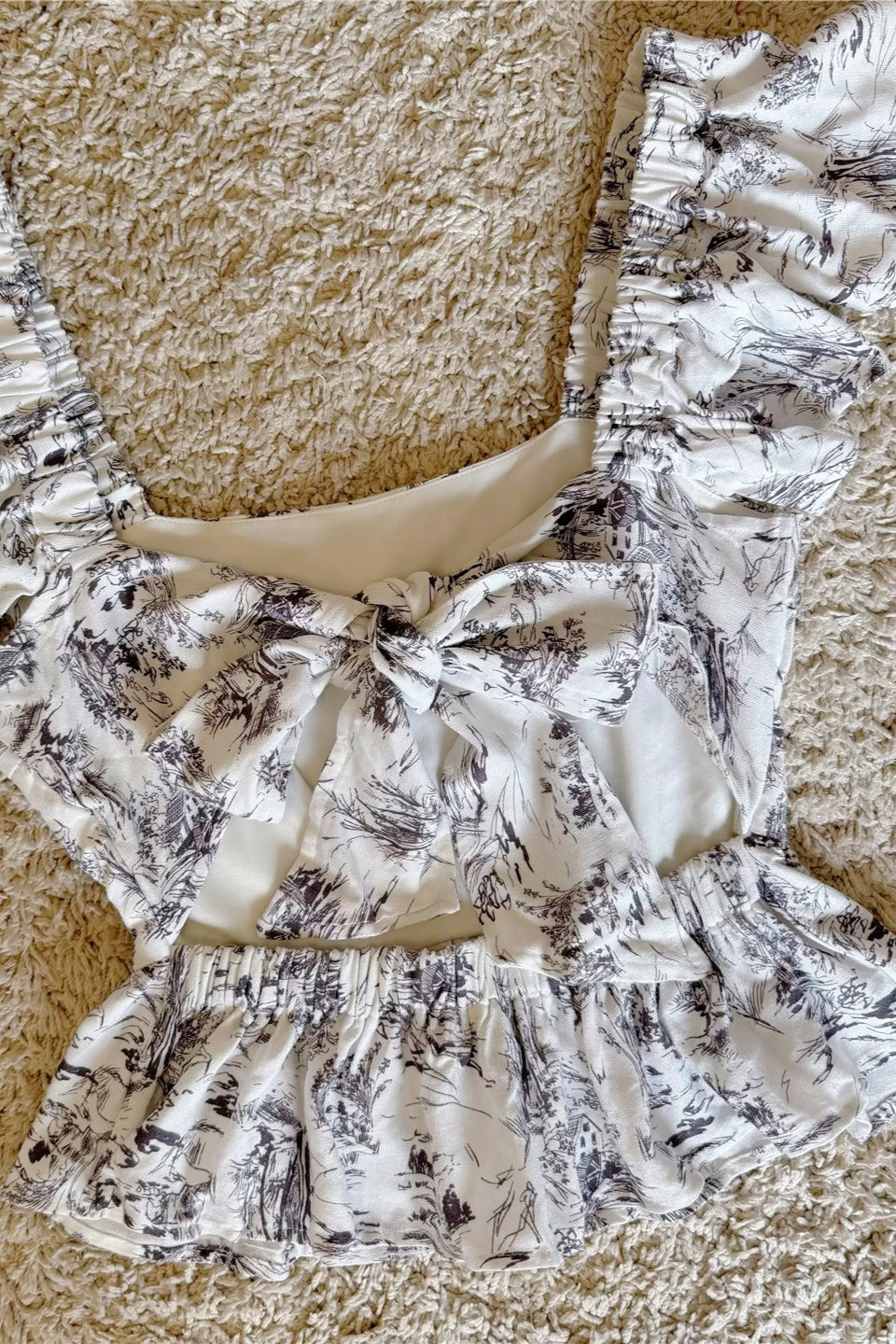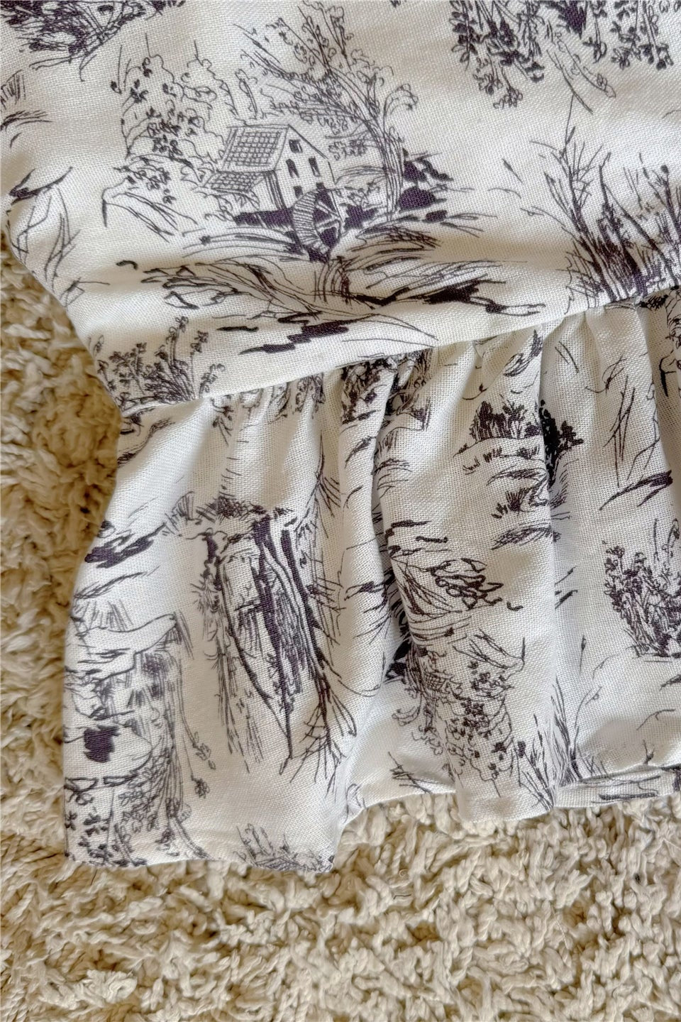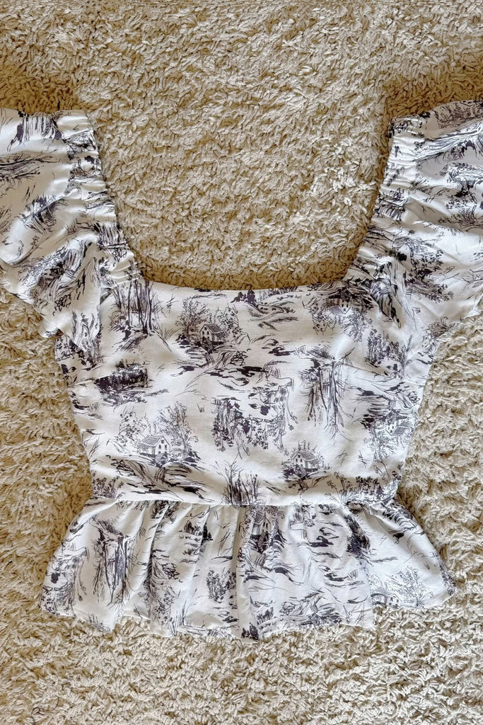 painting printed ruffle sleeve linen vest - XS is backordered and will ship as soon as it is back in stock.