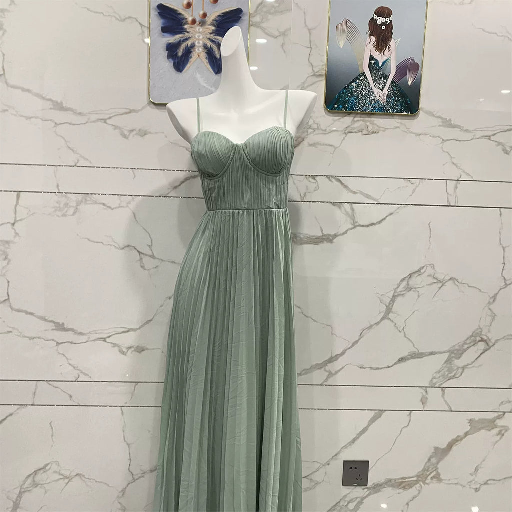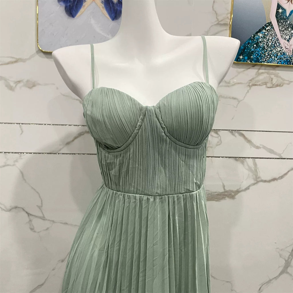 suspender open back pleated chiffon dress - XS is backordered and will ship as soon as it is back in stock.