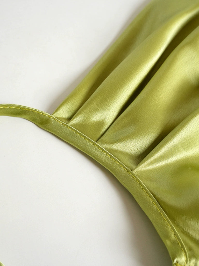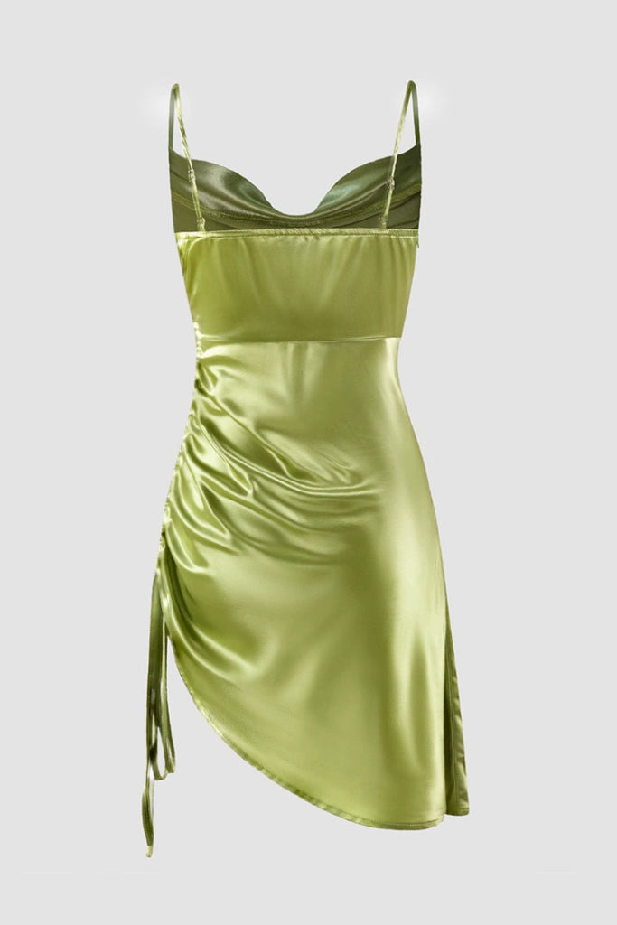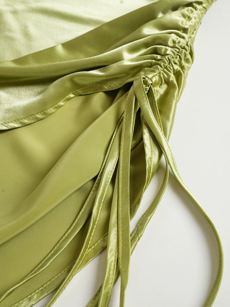 swing collar glossy satin drawstring strap suspender dress - S is backordered and will ship as soon as it is back in stock.