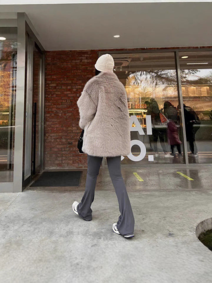 suit collar imitation fur midi length coat