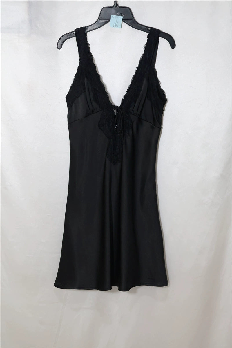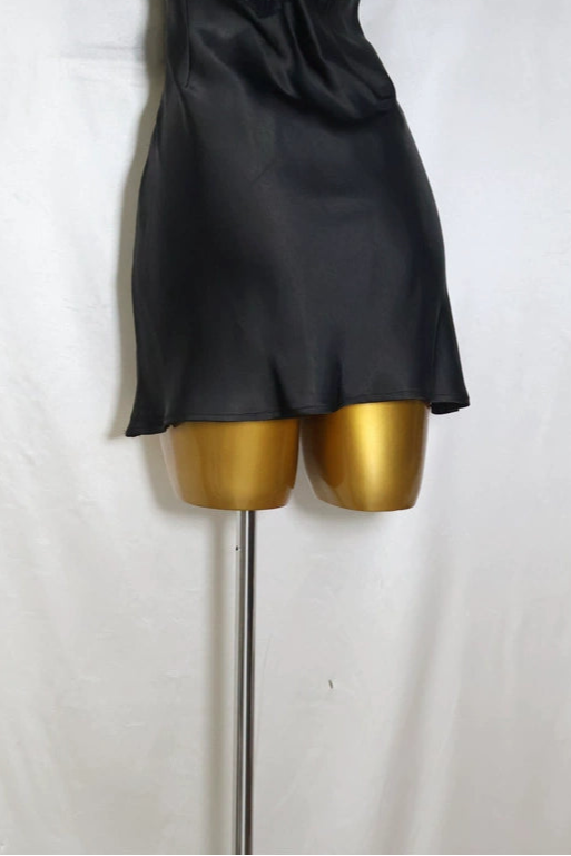 black satin V-neck mini dress – Bellepolly