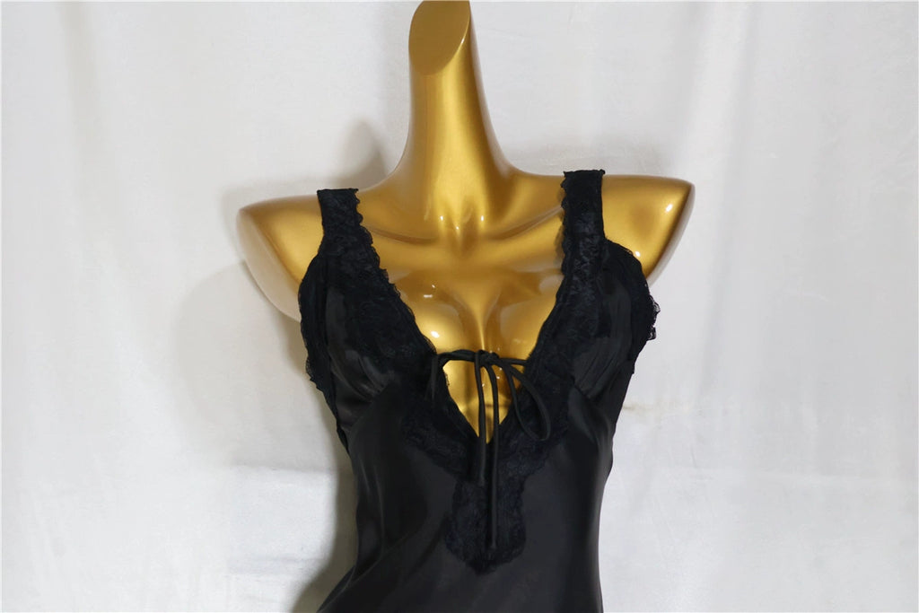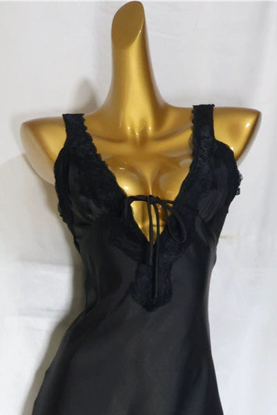 black satin V-neck mini dress