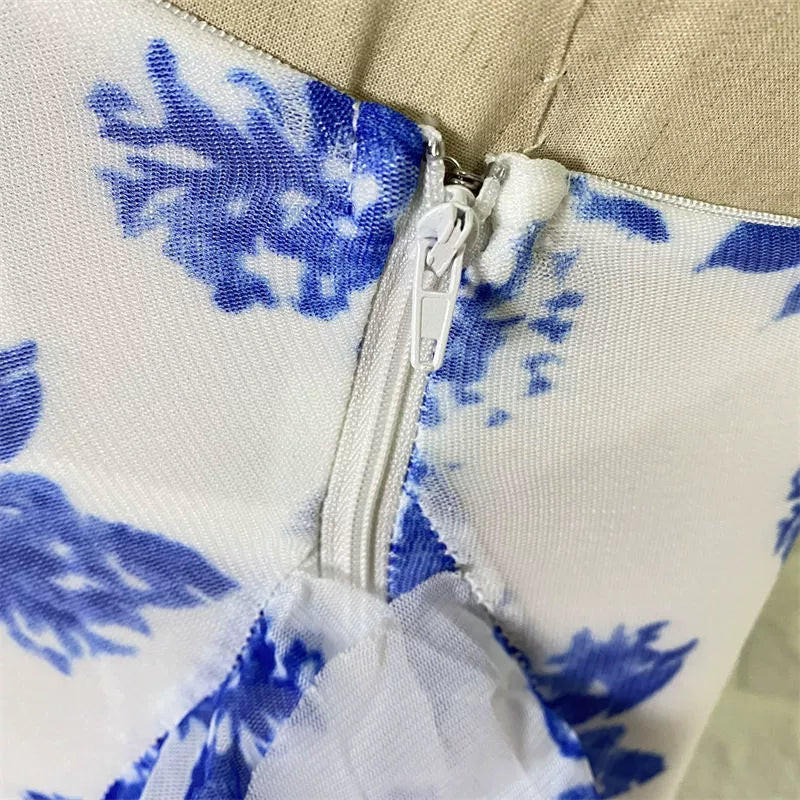 blue bandeau ruffled wrap mini dress - S is backordered and will ship as soon as it is back in stock.