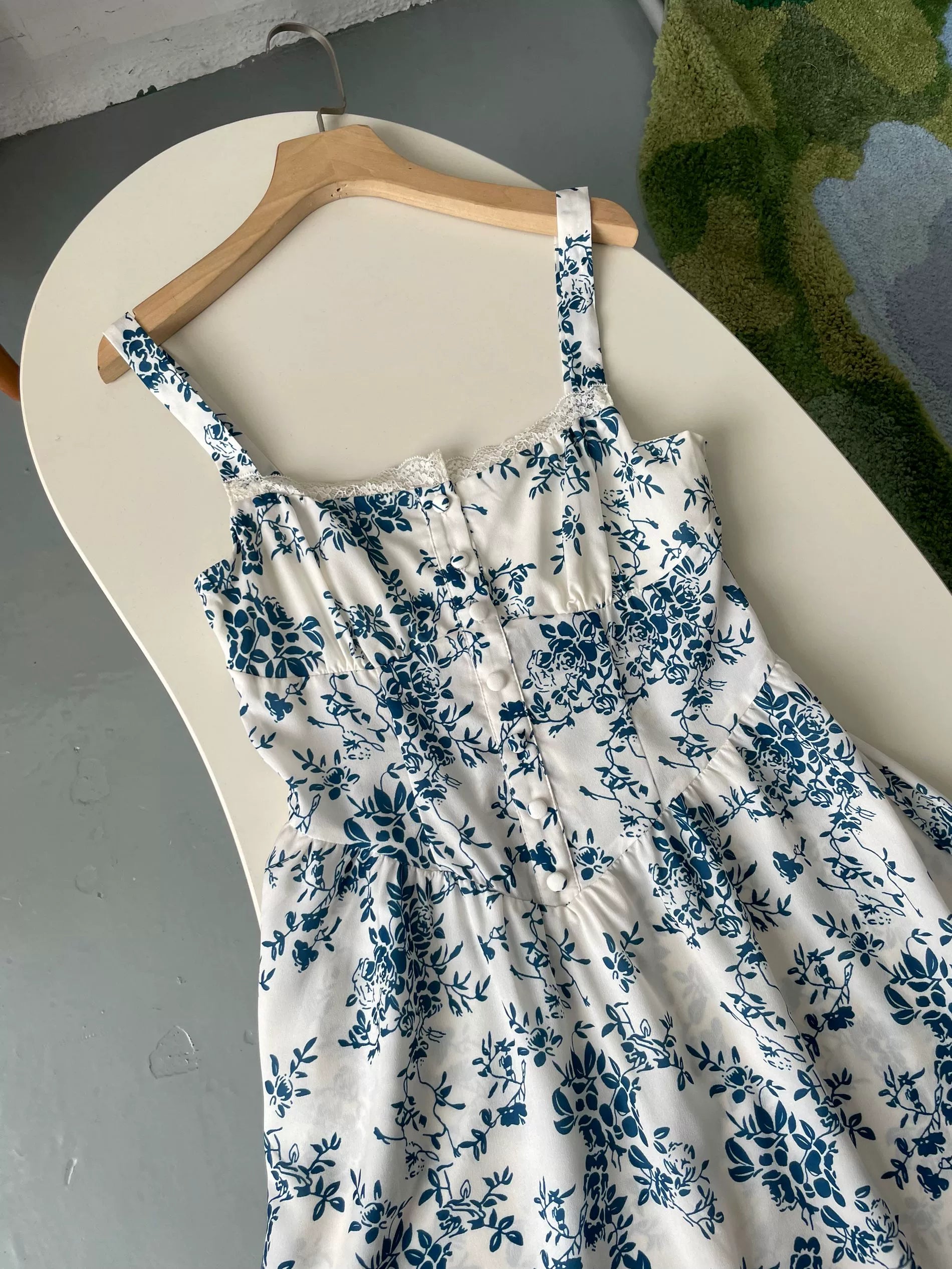 blue floral square neck vest dress - XXS is backordered and will ship as soon as it is back in stock.