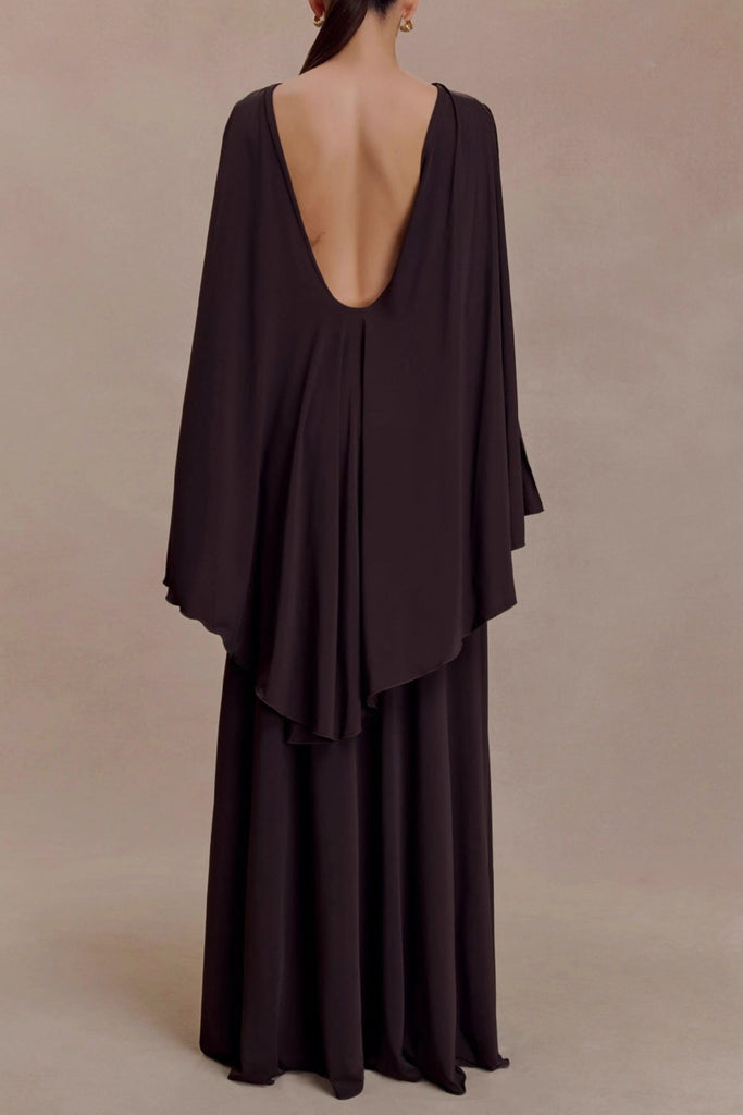 open back cape pleated maxi dress - S / Dark chocolate is backordered and will ship as soon as it is back in stock.