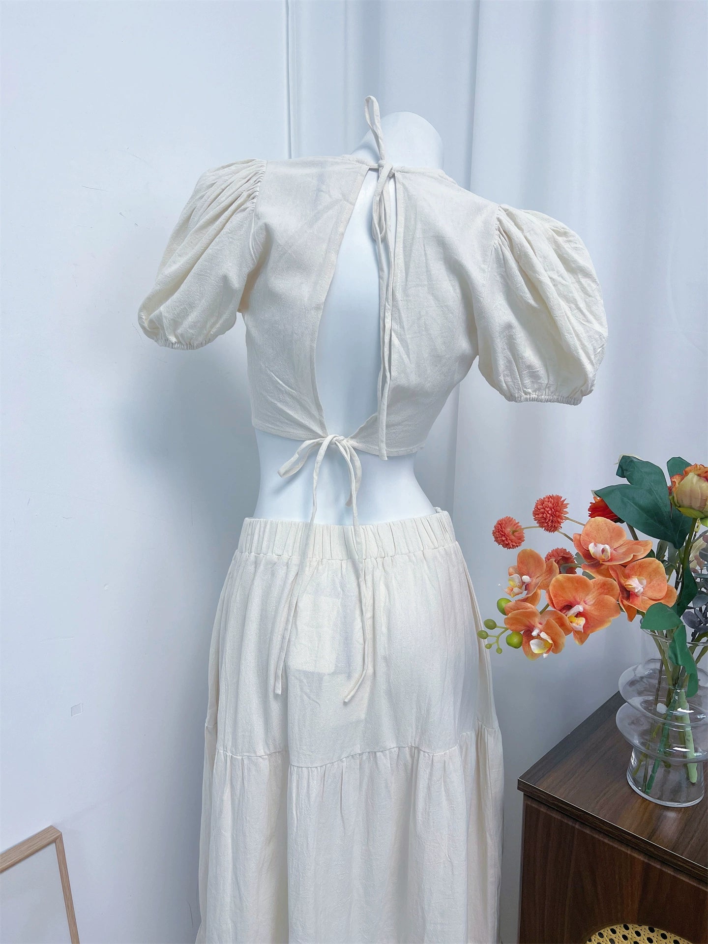 white two-tone crew neck crop top set