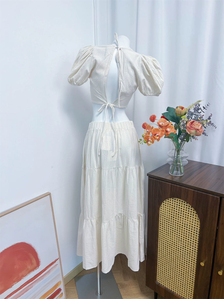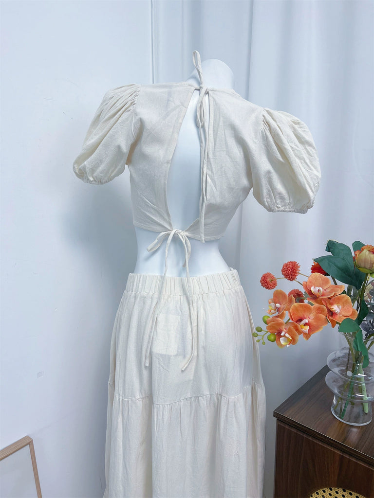 white two-tone crew neck crop top set – Bellepolly