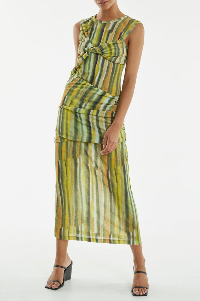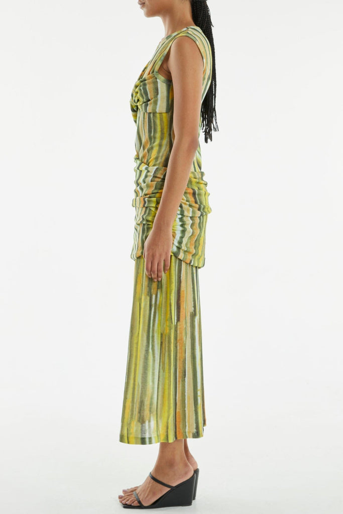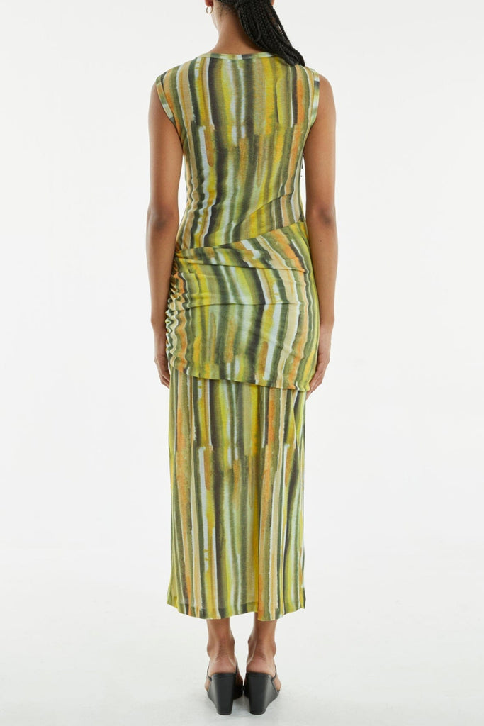 The Wind Through Tank Dress, adorned with the exclusive Brush Stroke print by Third Form, has reimagined the classic tank style with a modern twist. Meticulously crafted from lightweight Rayon fabric, this dress showcases an enchanting silhouette and incorporates self-fabric ruched layering over the bust and waistline, providing both style and coverage. With its semi-sheer finish and breezy feel, this dress becomes the quintessential summer staple for your wardrobe.