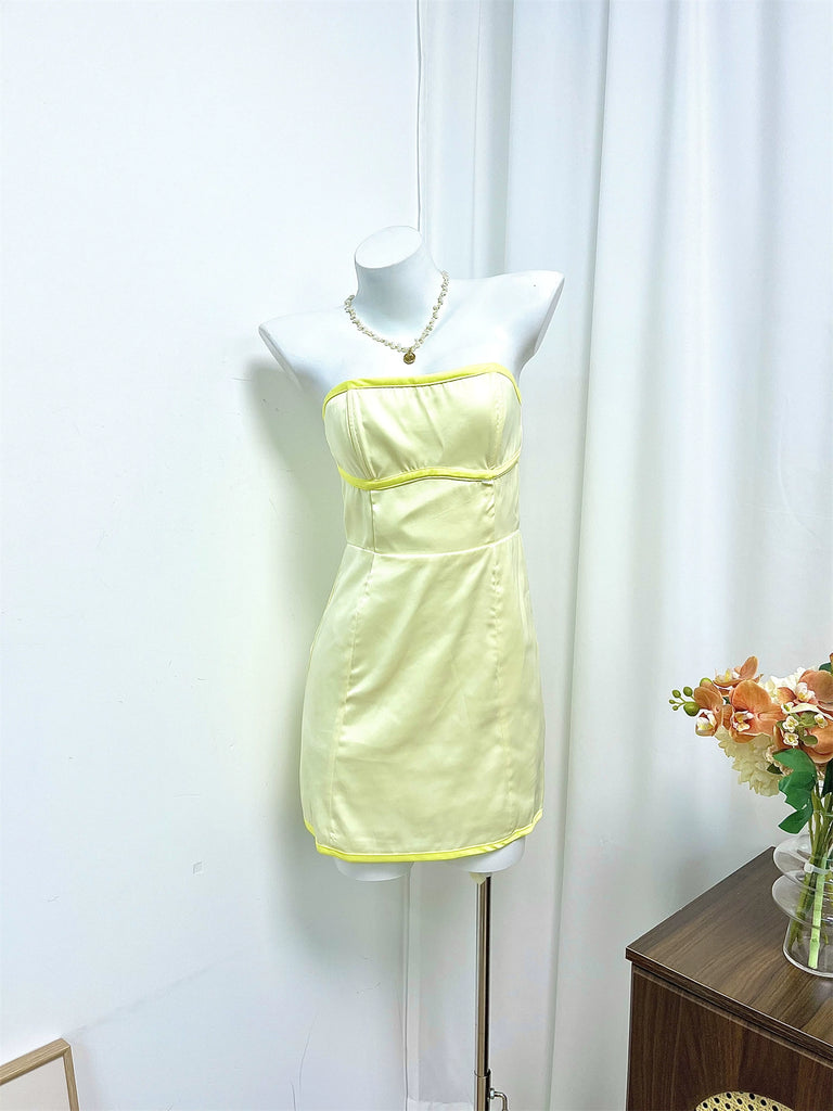 yellow satin bandeau mini dress - XS is backordered and will ship as soon as it is back in stock.