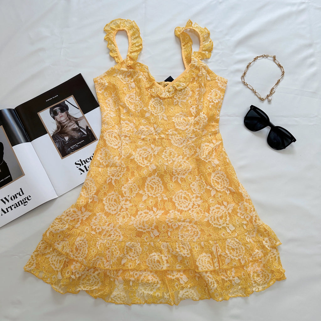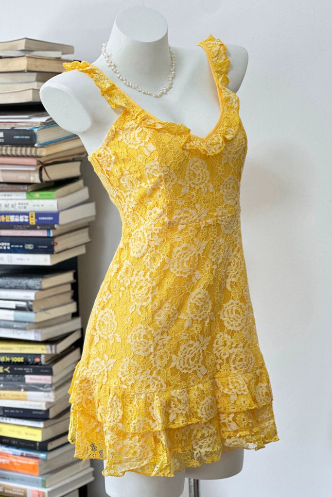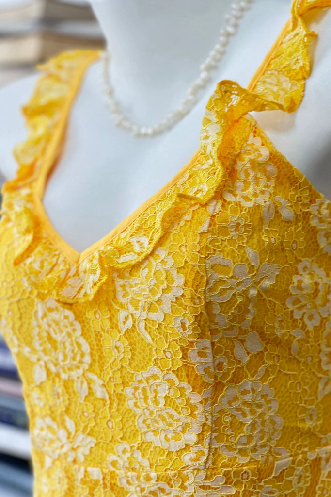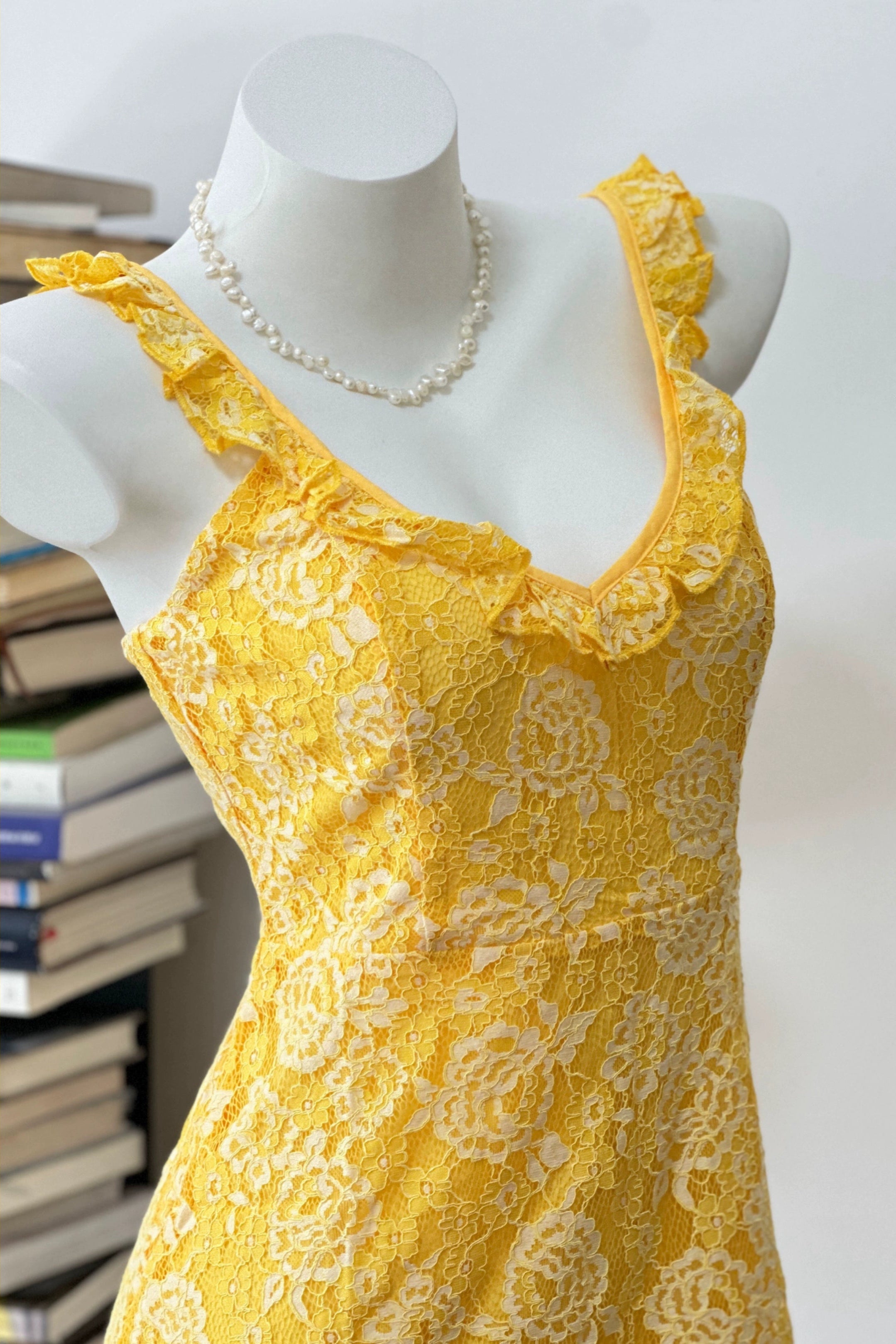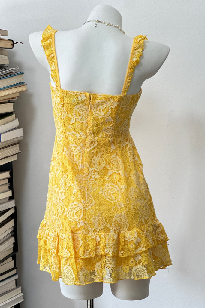 yellow suspender mini dress - S is backordered and will ship as soon as it is back in stock.