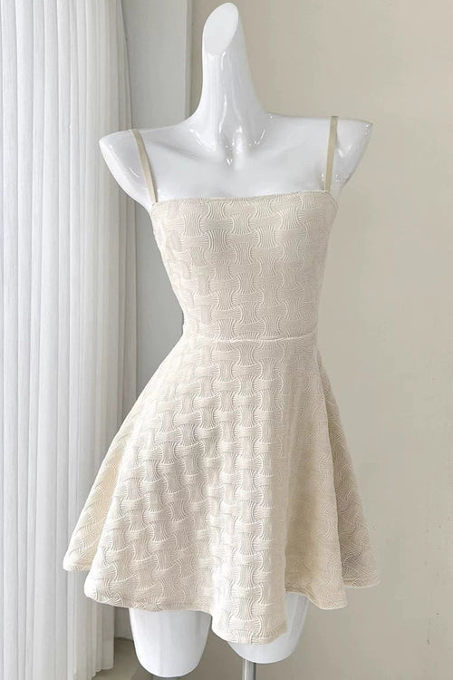 apricot off-shoulder cinched waist A-line mini dress